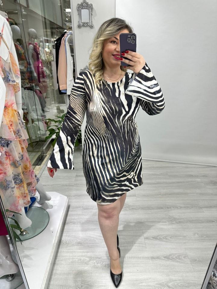 Siyah Ekru Zebra Desenli İspanyol Kol Elbise mc 5084 (TYSBUTİK002825)